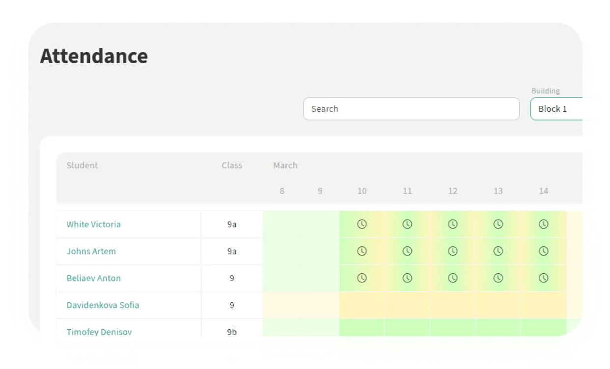 Teachers can see which students are at school but have not attended class — for more accurate monitoring.