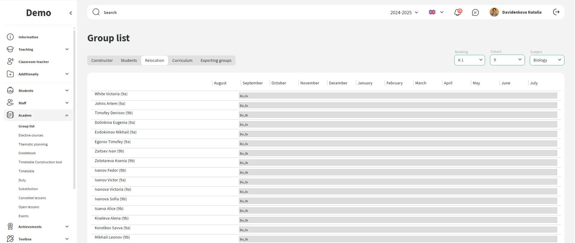 A group brings together students, teachers, and subject study parameters — level, curriculum, and number of hours. Groups can be homogeneous (all students from the same class) or mixed (from different classes and grades).