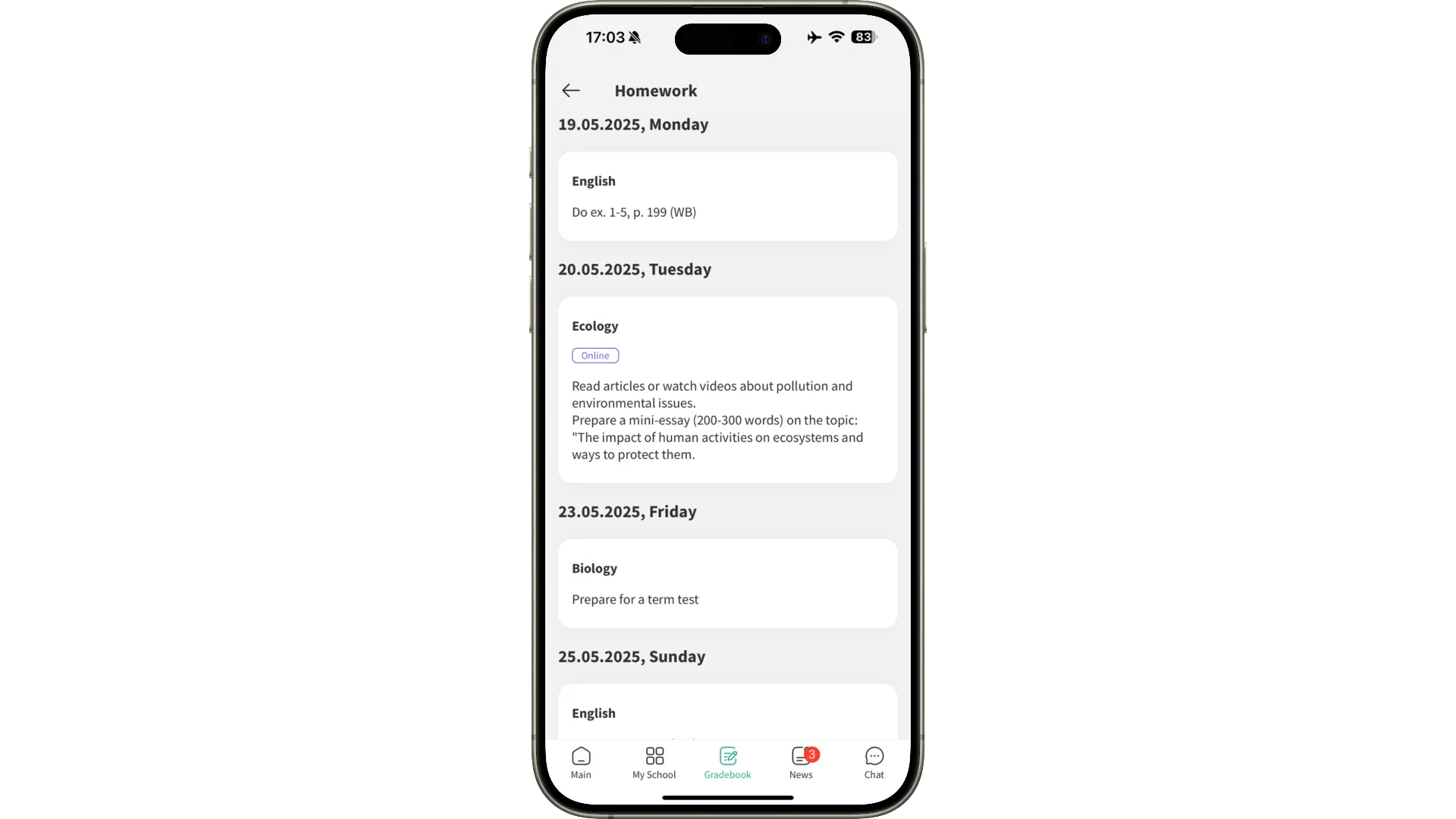 Enter the text, attach a file or link, specify the deadline — and the assignment will appear for students and parents.