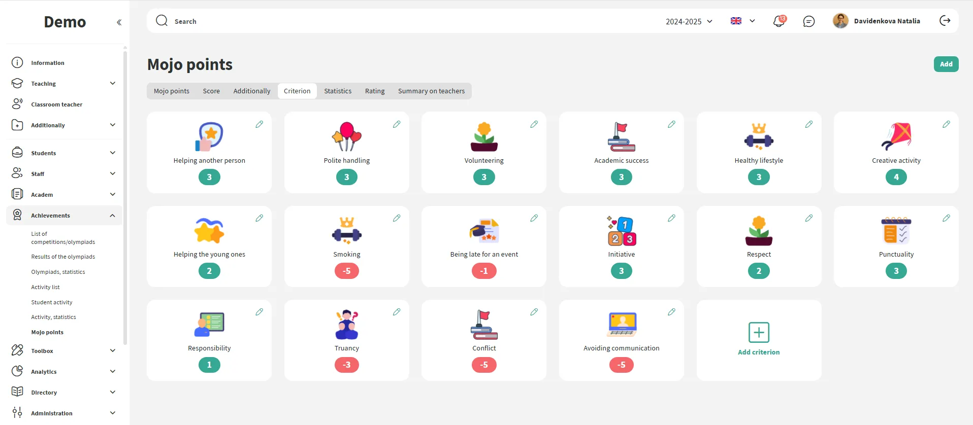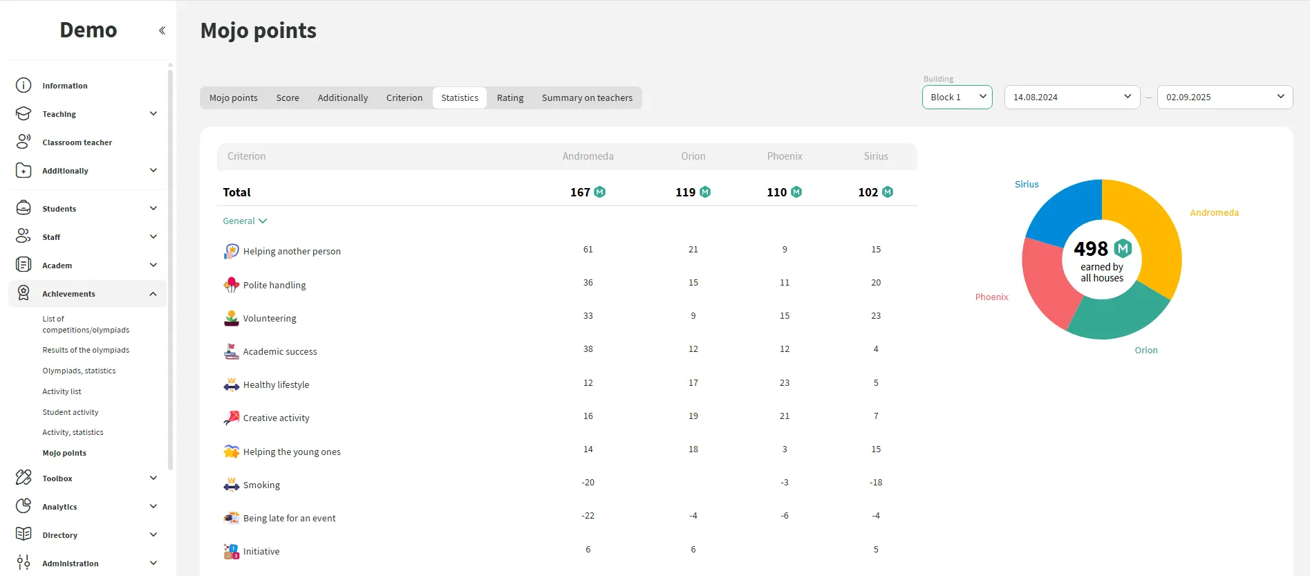 The school creates its own criteria for awarding points