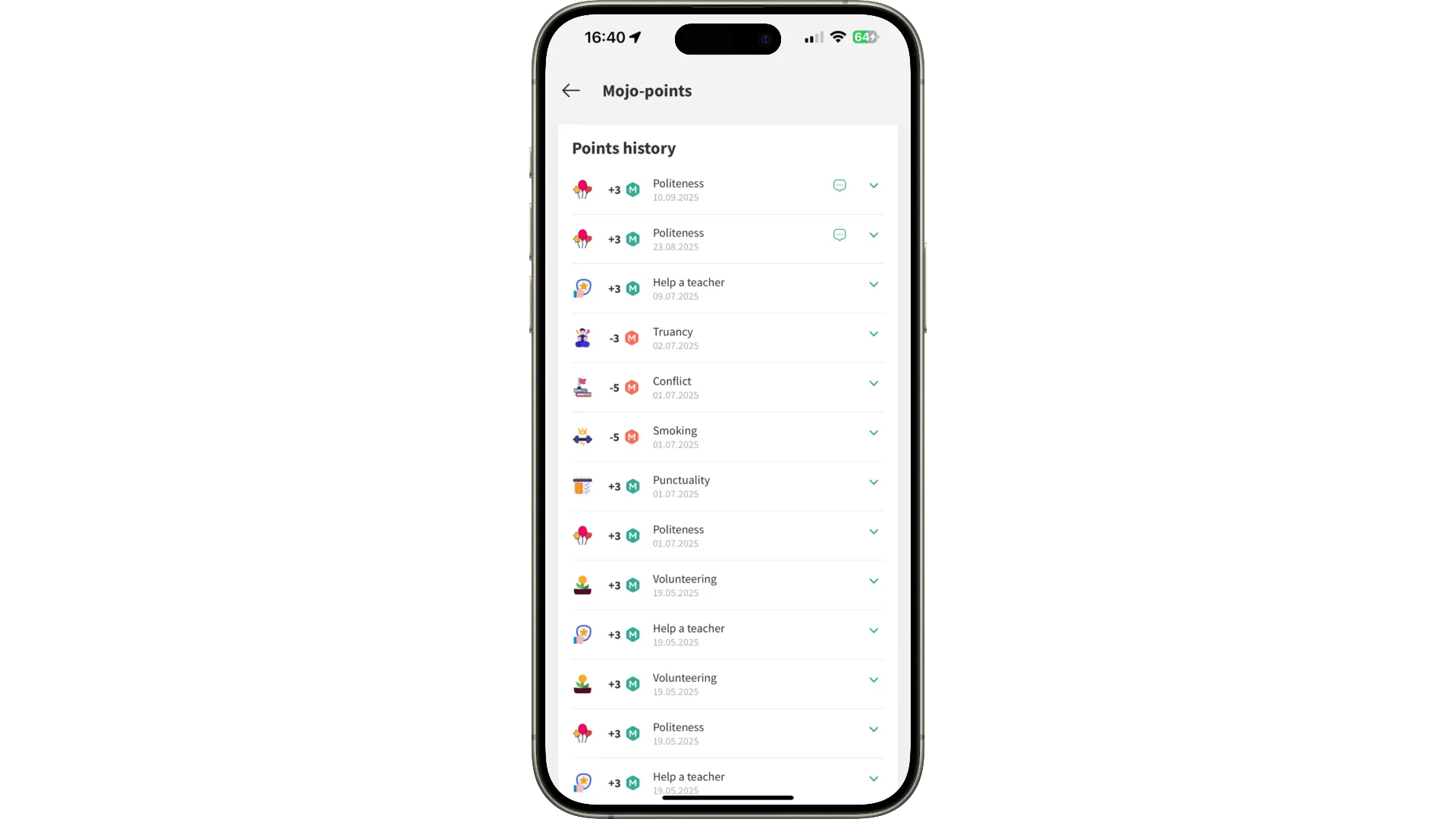 Students and parents see points and history in personal accounts